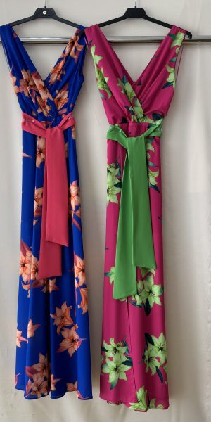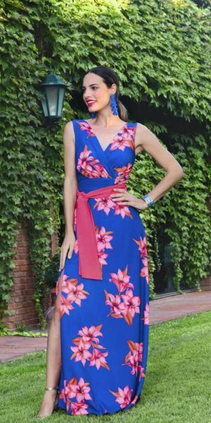 VESTIDO LARGO ESTAMPADO CON FAJÍN