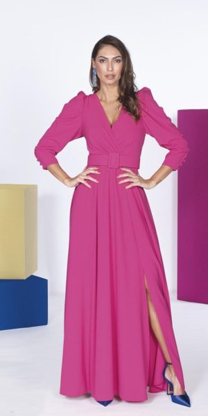 VESTIDO MAR LARGO CON CORTE EN LATERAL Y MANGA ABULLONADA