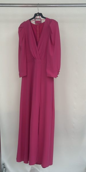 VESTIDO DAMA LARGO LISO MANGA ABULLONADA CON BOTONES